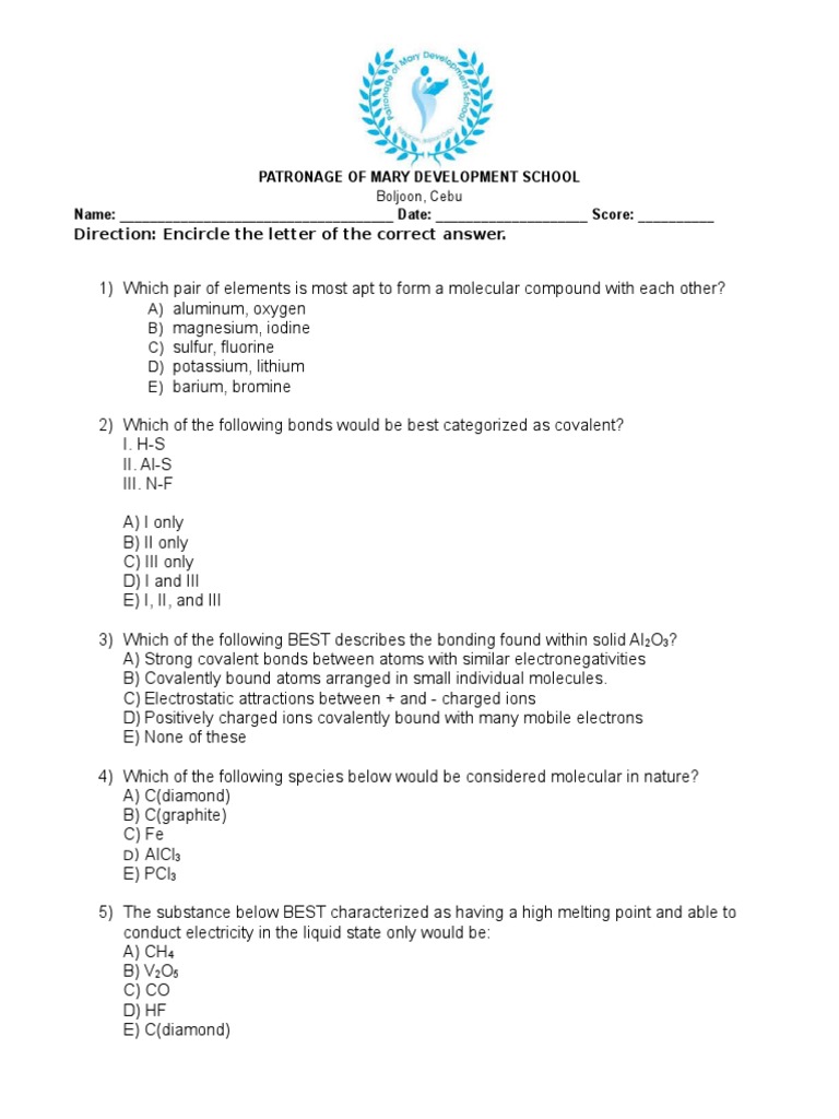A The positive and negative charges of the ions cancel out. It has a negative charge that is spread over the entire ion. In this bond formation the atom loosing its electrons is known as electropositive atom and the atom gaining electrons is known as electronegative atom. B- there are two oxygen atoms. Hydrogen bonds have ionic character. The compounds having ionic bonds are known as ionic compounds. The bonding type present between two metal atoms C. Mc004-1jpg Which statement best describes what happens next. Which combination of shape and bond angle best describes a molecule of sulfur dioxide.