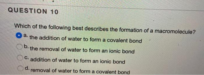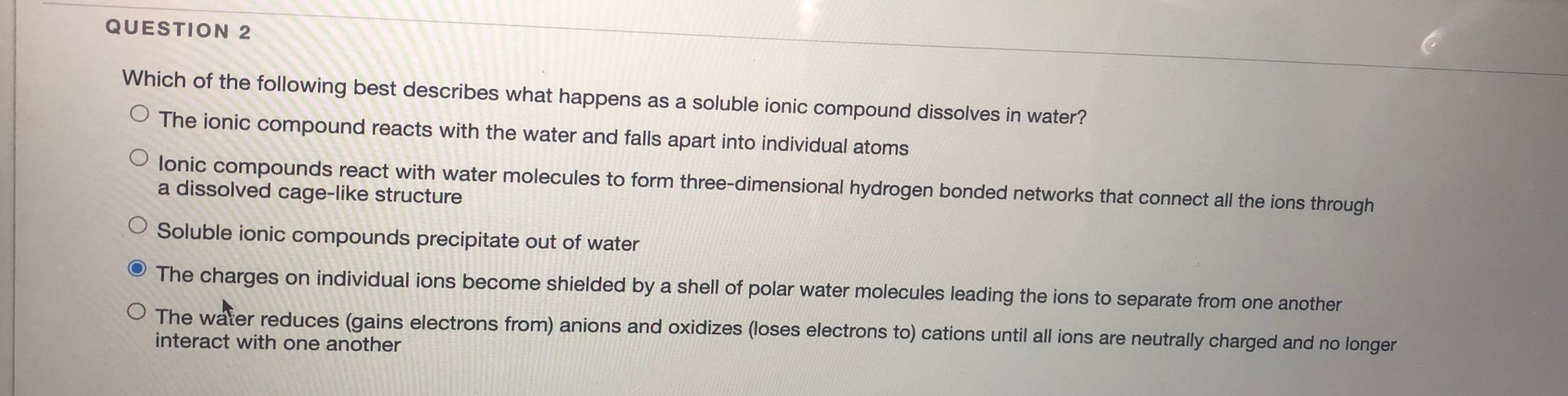 Which of the following statements best describes an ionic bond. B This is a chemical change and the molecules move farther apart. Which of the following compounds is unlikely to contain ionic bonds.