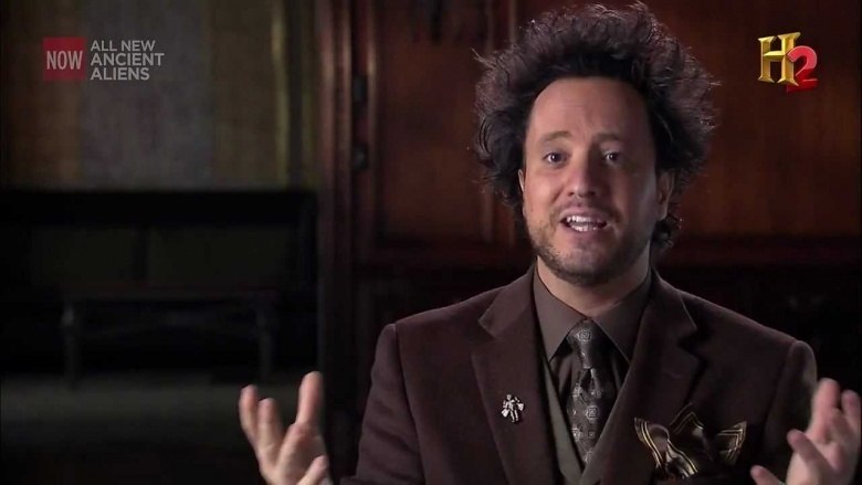 The majority of the aliens meme have their origin in the History Channel series Ancient Aliens. I can only hope they know its all BULLSHT. The creepy and weird hairstyle of Giorgio A.