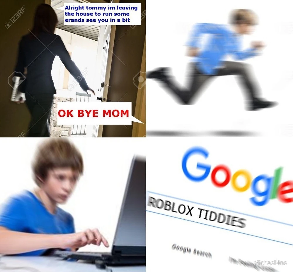 51m members in the dankmemes community. Roblox Tiddies Meme Some Free Robux Codes opikuyati25. Roblox Tiddies or OK Bye Mom is a multi-pane exploitable comic series in which a young boy rushes to a laptop computer to search for something on Google immediately after his mother leaves the house.