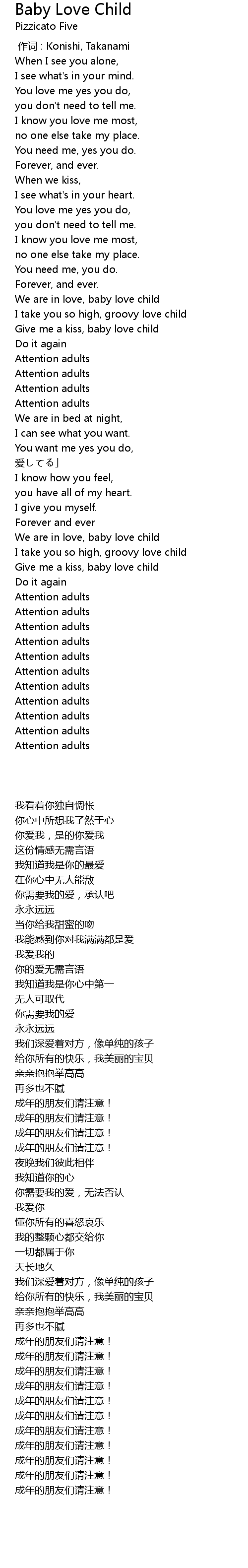 When I close my eyes like a flower bud I become sleepy We are baby love child Foolish groovy love child Kiss me baby love child One more time. When we kiss I see whats in your heart. You need me you do. Words of love Ticklish everytime I whisper I become a child When we make love I smell something sweet When we make love I get tired and. You love me yes you do you dont need to tell me. Bring me back to childhood. You love me yes you do you dont need to tell me. Mmm baby Hold on hold on just a little bit longer. I know you love me most No one else take my place.