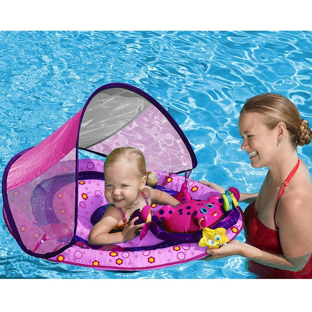 SwimSchool Splash Play Fun-Fish Baby Pool Float with Canopy with Activity Center Dual Air Pillow Chambers and Adjustable. Swimways Baby Spring Float Activity Center. Each sold separately Introduce your baby to the pool with the SwimWays Baby Spring Float Sun Canopy baby float. The SwimWays Baby Spring Float with Canopy is part of the SwimWays Swim Steps learn to swim program. Though the ones that DO have the canopy are very annoying. Air pillows easily inflate or deflate for ultimate portability. Lower center of gravity safety valves and separate air chambers to enhance security. SwimWays Baby Spring Float w Canopy Pink. The SwimWays Baby Spring Float Activity Center is a great way for you and baby to enjoy the summer.