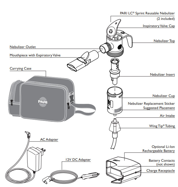 Each pack includes AC DC power cords Wing-Tip Tubing two Sprint LC Reusable Nebulizers and a. PARI Trek S Portable Nebulizer Aerosol System Model 047F35-LCS. Perfect for those with active lifestyles Trek S allows you the freedom to take treatments anywhere.