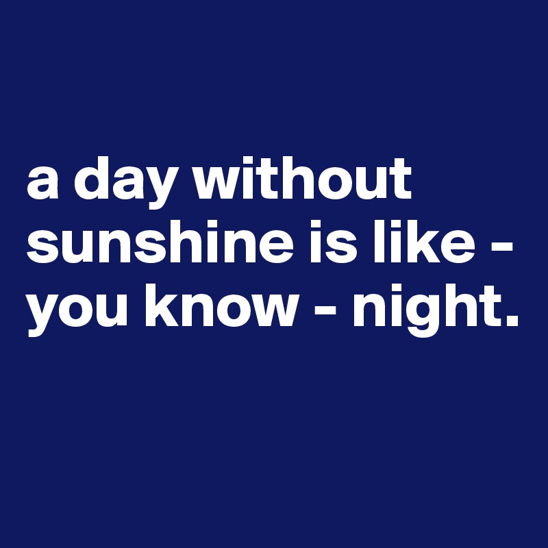 A day without sunshine is like night. American - Comedian Born. Login Signup Toggle Dark Mode. A day without sunshine is like you know night.