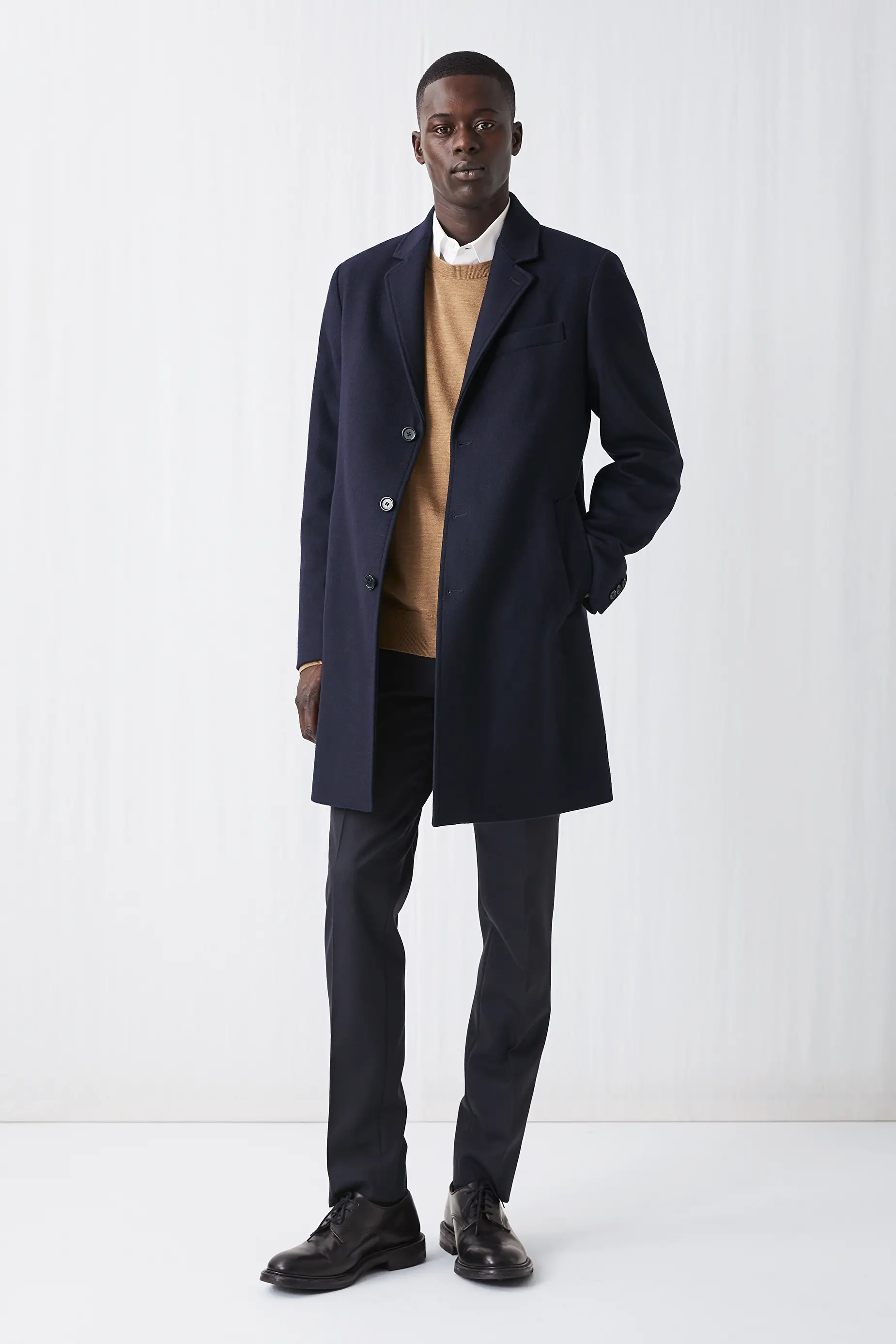Designed to carry you through the seasons this style is lightly lined and perfect for layering Notch lapel Two-button. A utilitarian take on the timeless Balmacaan coat crafted in soft warm Italian Melton fabric with a luxurious touch of cashmere WARMER. Lined so you can layer it through the seasons SUSTAINABILITY.