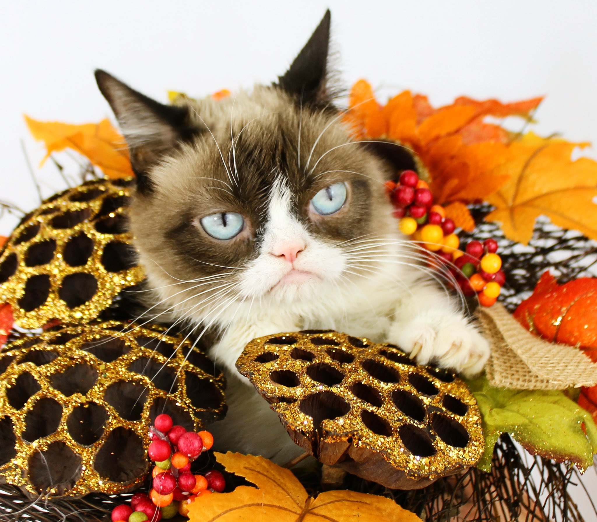 See all captions By kenbaker--Comments. View more Grumpy Cat Thanksgiving. Grumpy Cat is an Internet meme sensation with over 6 million Facebook friends who has graced the cover of New York Magazine is the spokescat for Friskies appeared on American Idol and the MTV Movie Awards.